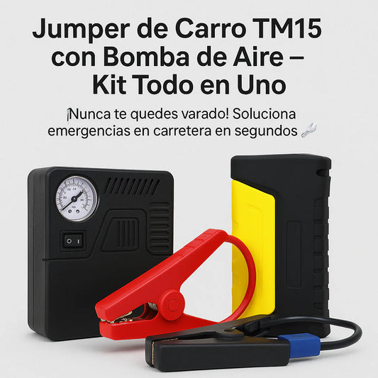 Ahorraras RD$ 250JUMPER DE VEHICULO TM15 + BOMBA DE AIRE KIT TODO EN UNO